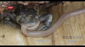 Tiger Salamander laying down on wood biting on a moving worm trying to swallow it HA MCU HAND
