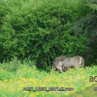 Two Waterbuck clambering, walking and horns stuck together.