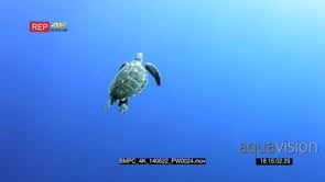 A Green Sea Turtle swims in the blue sea GOOD LIGHT