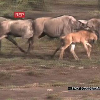 A Herd of Wildebeests with Calfs Running in the Bushveld GENERAL BEHAVIOUR