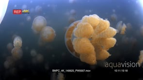 Pulsating Golden Jellyfish,Mastigias papua etpisoni in Jellyfish lake(fifth Lake) on Eil Malk island,Koror, Palau (fifth Lake)