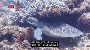 Hawksbill sea turtle on Mbwangawa coral reef hiding