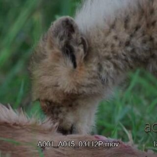 Cheetah Cub laying down, walking to the carcass and feeds on the remaining.