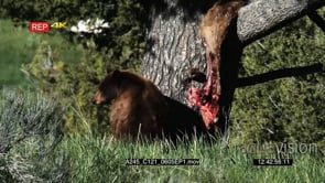 Brown Bear Feeding on Elk Carcass hanging on the Tree MLS GOOD LIGHT