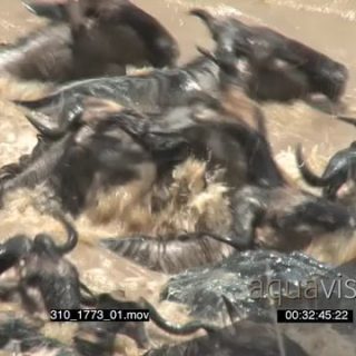 A Large Herd of Blue Wildebeests Swimming to the other side of the River with some drowning GREAT MIGRATION GENERAL BEHAVIOUR AmCam HA