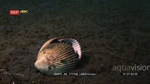 CU of a Veined octopus or coconut octopus, Amphioctopus marginatus with just its eyes peeping out of shell, that is hiding in