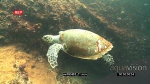 Hawksbill Sea Turtle swimming underwater in ocean deep CU PAN UW