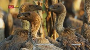 Close up shot of flock of white-backed vultures head looking around