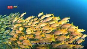 A large school of bluelined snapper fish swirl in the ocean GOOD LIGHT