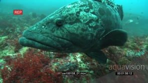 Potato Bass swimming underwater in ocean deep passing by camera MLS TRA