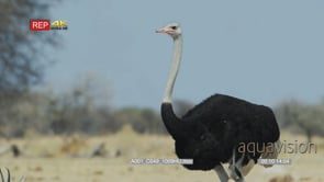 Common male ostrich standing behind springbok herd NB: you can only see springbok horns not body