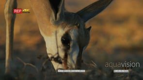 Close up shot of young springbok’s head grazing