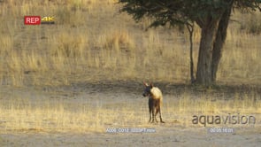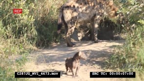 Spotted Hyena mother and pup walking around den Two Juvenile Hyenas pass by MS