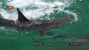Nurse Sharks swimming in ocean out of the blue fighting for a fish and one eating it HA MLS HAND SLOWMO