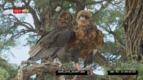 Bateleur pair in tree displaying