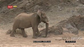 Desert elephant bull walking around rocky dune beside the Hoanib riverbed