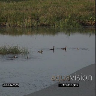 Carolina duck and a flock of Black-bellied Whistling in a dam moving around GENERAL BEHAVIOUR