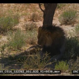 Select options DownloadMale lion with black mane grooming in the shade of a tree in Kalahari