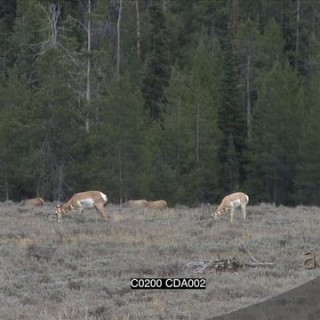 A herd of Pronghorn Antelopes walking around, standing and grazing GENERAL BEHAVIOUR