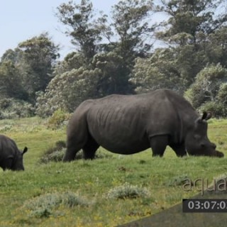 White rhino mother and calf graze on grassland GREEN WS PROFILE 4K