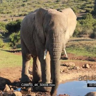An elephant standing next to the waterhole after drinking WS GOOD LIGHT