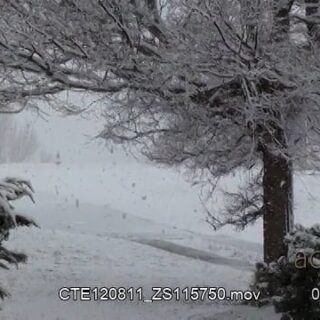 Blizzard snow with trees leaning.