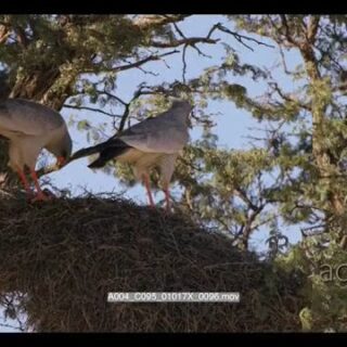 Select options Downloadclose up shot of two pale chanting goshawks birds melierax canorus on top of a social nest. One is ripping meat off its kill with its sharp beak