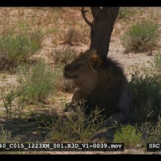 Select options DownloadA male lion with a black mane looking directly at the camera stands up and lay down again under the shade of a tree grooming itself