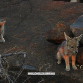 Two Black-backed jackal pups on rocks
