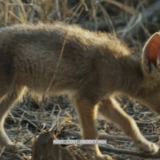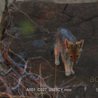 Black-backed Jackal pup walking, sniffing and looking around.