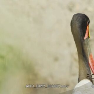 Woolly-necked stork back view, standing and looking around.