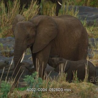 Female African Elephant with its calf nursing milk.