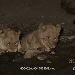 African Lion’s strangle feeding on impala stuck in the mud at NIGHT