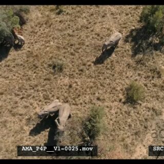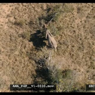 Aerial Drone African elephant and calve feeding off bushes