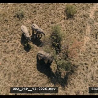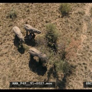 Aerial Drone African elephants and calve feeding off bushes