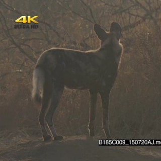 African wild dog scouting around hunting SEMI DRY
