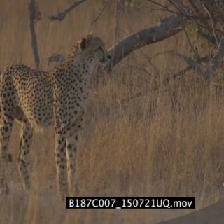 Cheetah walking around searching for prey hunting and scouting SEMI DRY LS PAN