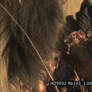 African Lion walks to the other side of the Elephant carcass to feed with others; CU XLS
