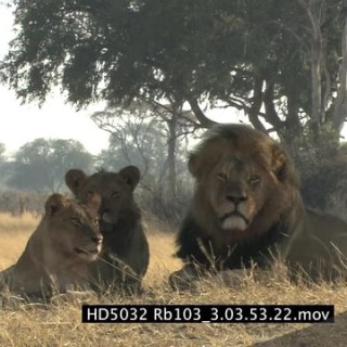 African Lion pride laying down looking at; MS; CU of adult male