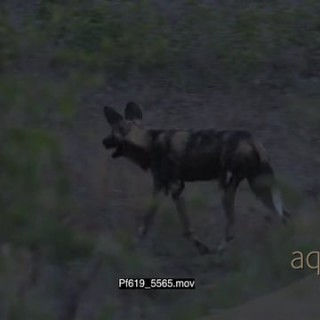 Wild dog pack hunting running through bushes alerted GREEN MS PAN