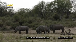 White Rhino herd on riverbank XWS