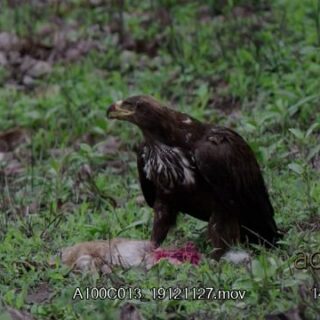 Steppe eagle feeding on impala lamb carcass