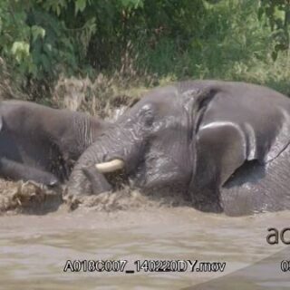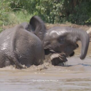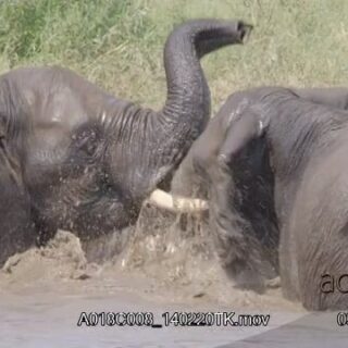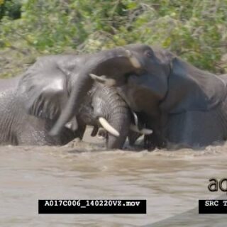 Slow motion of two adult African Elephant fighting in water, during daytime.
