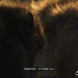 Chacma Baboon grooming a juvenile during golden hour.