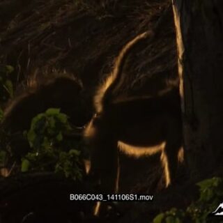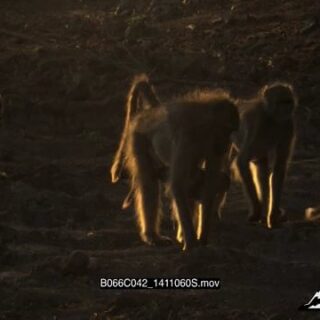 Chacma Baboon female walking towards male then interacting.