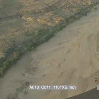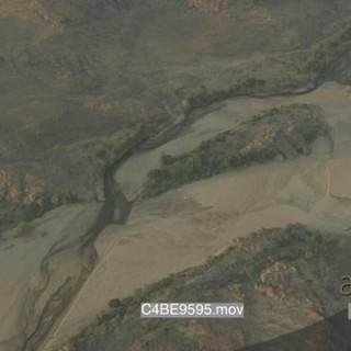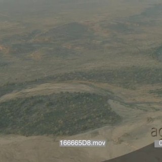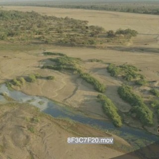 Aerial over Mashatu along dry delta river channel