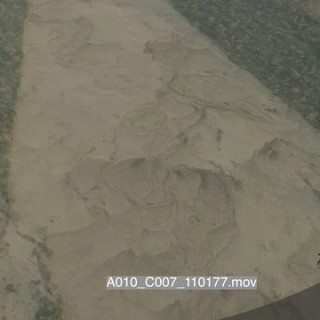 Aerial over Mashatu along dry riverbed sunrise