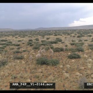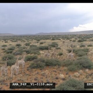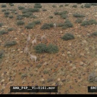 Aerial Drone over bushveld Giraffe herd general behaviour