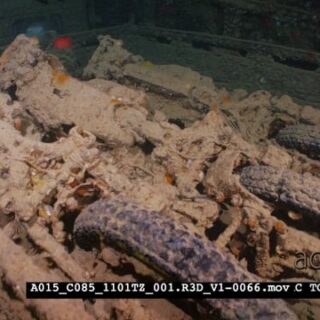Select options DownloadA Wide shot of a diver in the hold of the Thistlegorm shipwreck with Soldierfish swimming about.