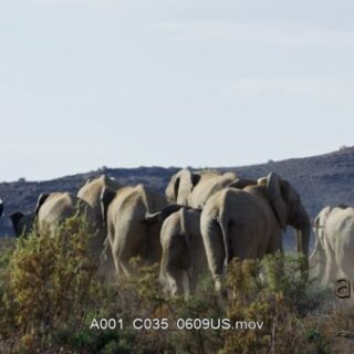 Herd of young and adult African Elephant running off the frame.